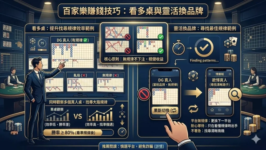 百家樂賺錢技巧!看多桌跟換品牌看