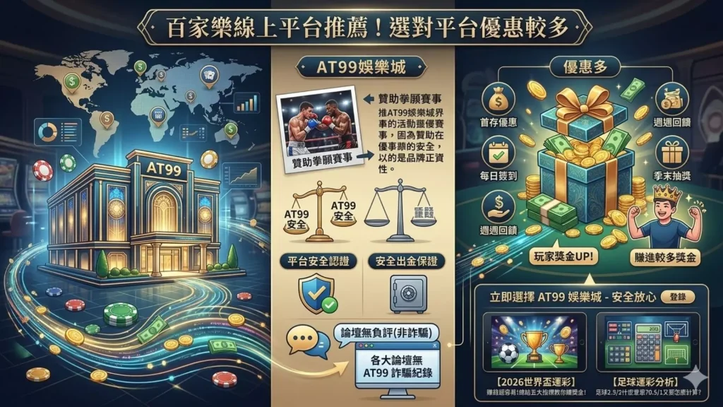 百家樂線上平台要如何選?這裡最好就是選擇比較有保證的平台,舉例來說「AT99娛樂城」這一間品牌來說,雖然在網路上爭議許多,不過至少知名度比較高,同時「AT99娛樂城」還有贊助拳願舉辦賽事,你看看其他娛樂城誰贊助過賽事?所以選「AT99娛樂城」才可以比較安心。